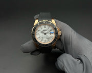 Le boîtier en acier couleur or rose, avec sa finition impeccable, accentue l'attrait de cette montre seikomod, en faisant une pièce maîtresse pour toute collection de montres. Elle respire la qualité et l'exclusivité, offrant une élégance sans compromis pour ceux qui naviguent dans la vie avec assurance et style.